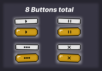 This asset pack contains 2 Button styles, and 4 Icons, to allow for customization. It is perfect for pixel art games of any kind.